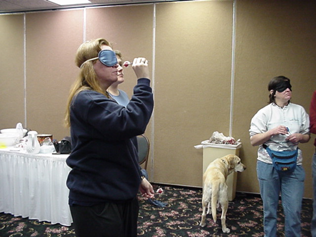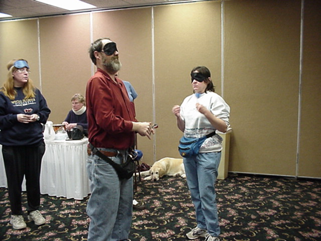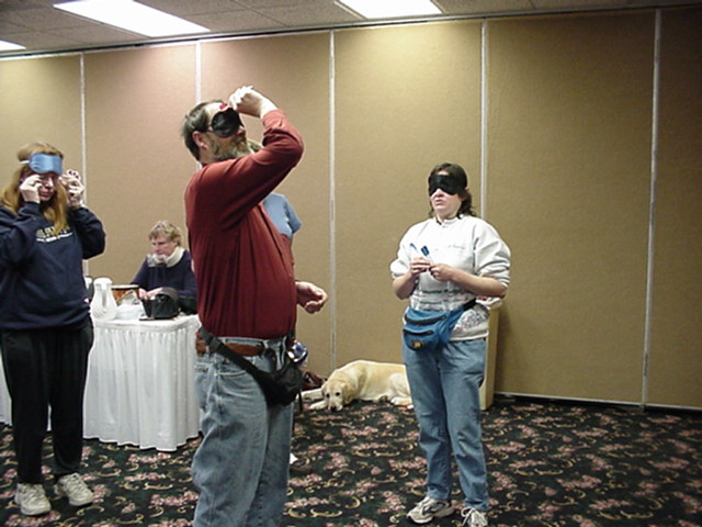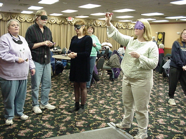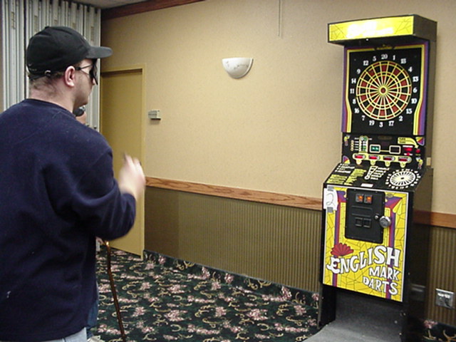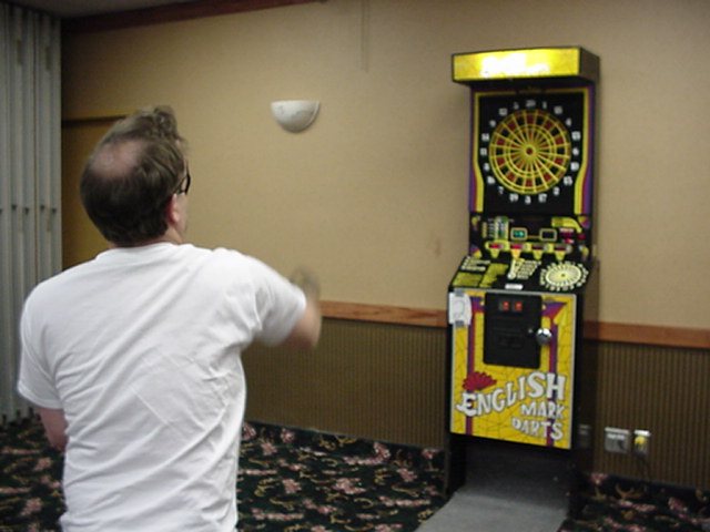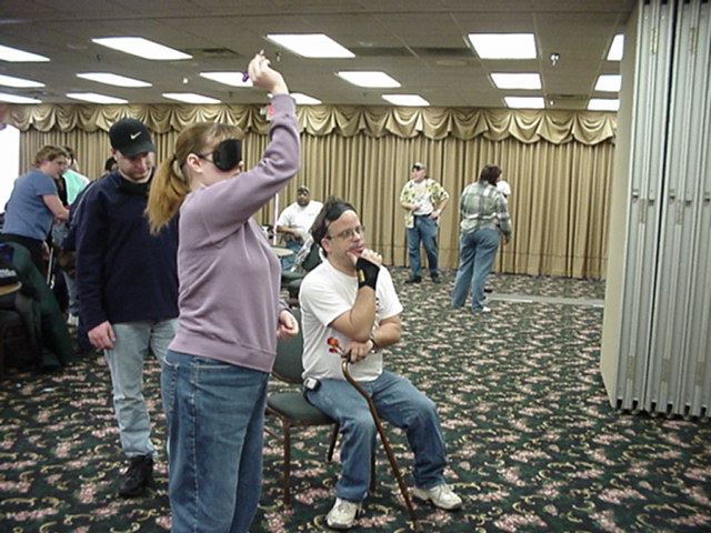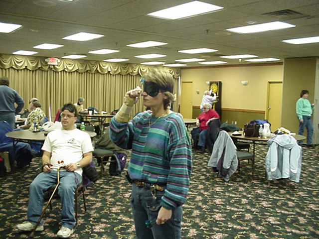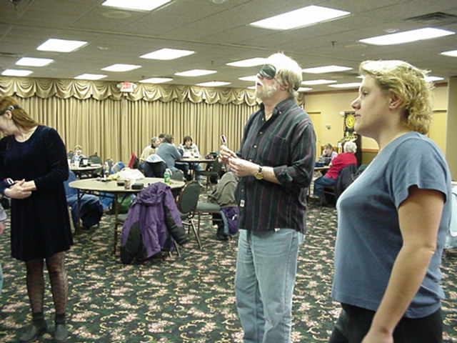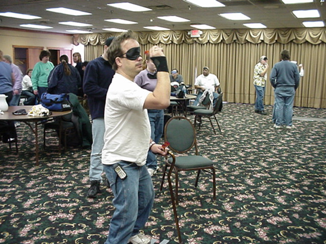 Don throwing, Lisa masking up, and Barb O watching, 2004 tournament